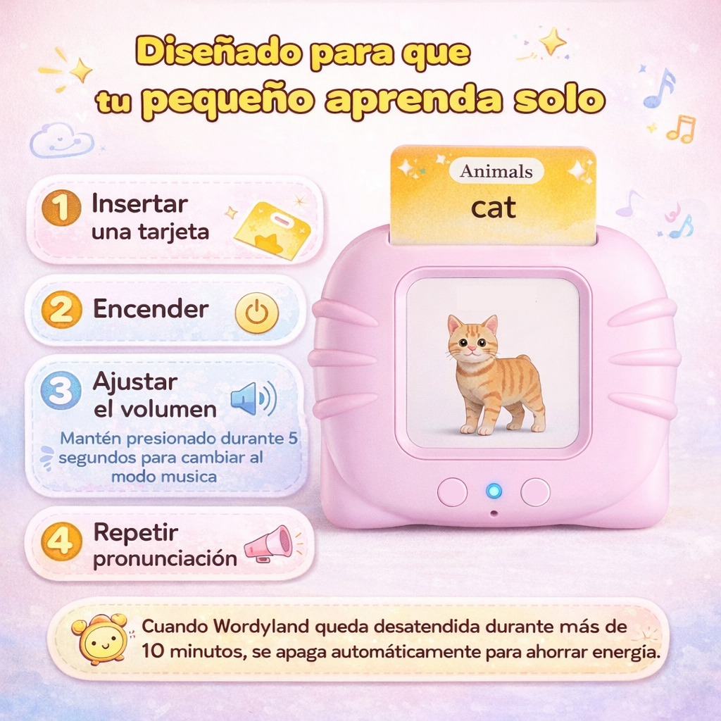 Wordyland convierte el aprendizaje en un juego interactivo con sonidos divertidos e ilustraciones coloridas, ayudando a tu hijo a descubrir nuevas palabras.